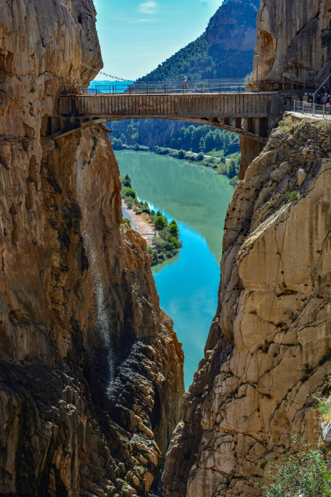 Step onto the transparent glass platform and look straight down into the gorge — a truly heart-stopping moment. From here, the views stretch across the turquoise waters of the Guadalhorce River and the jagged cliffs that define this dramatic landscape. It’s the perfect spot for photos and a reminder of the walkway’s incredible engineering achievement.